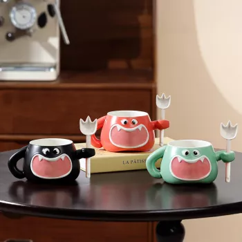 Creative Ceramic Mug with Lid & Spoon – Funny Aesthetic Cup for Girls