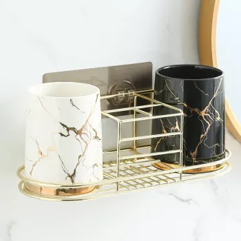 Elegant Marble Ceramic Bathroom Cup Set