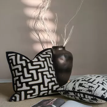 Luxury Black & White Geometric Jacquard Cushion Cover – Elegant Chenille Pillow Case
