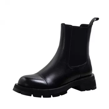 Women's Leather Winter Chelsea Ankle Boots with Thick Heel and Round Toe